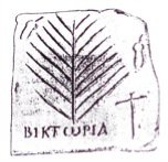 древняя христианская надгробная плита с пальмовой ветвью, крестом и латинским словом «победа», написанная греческими буквами (с употреблением альфы (Α) и омеги (Ω )