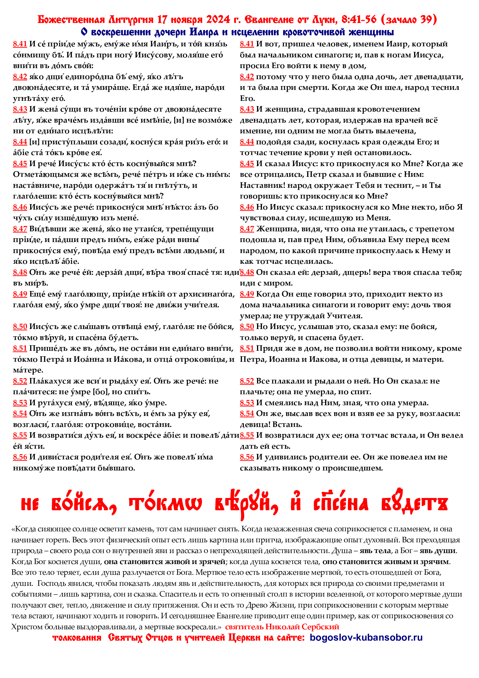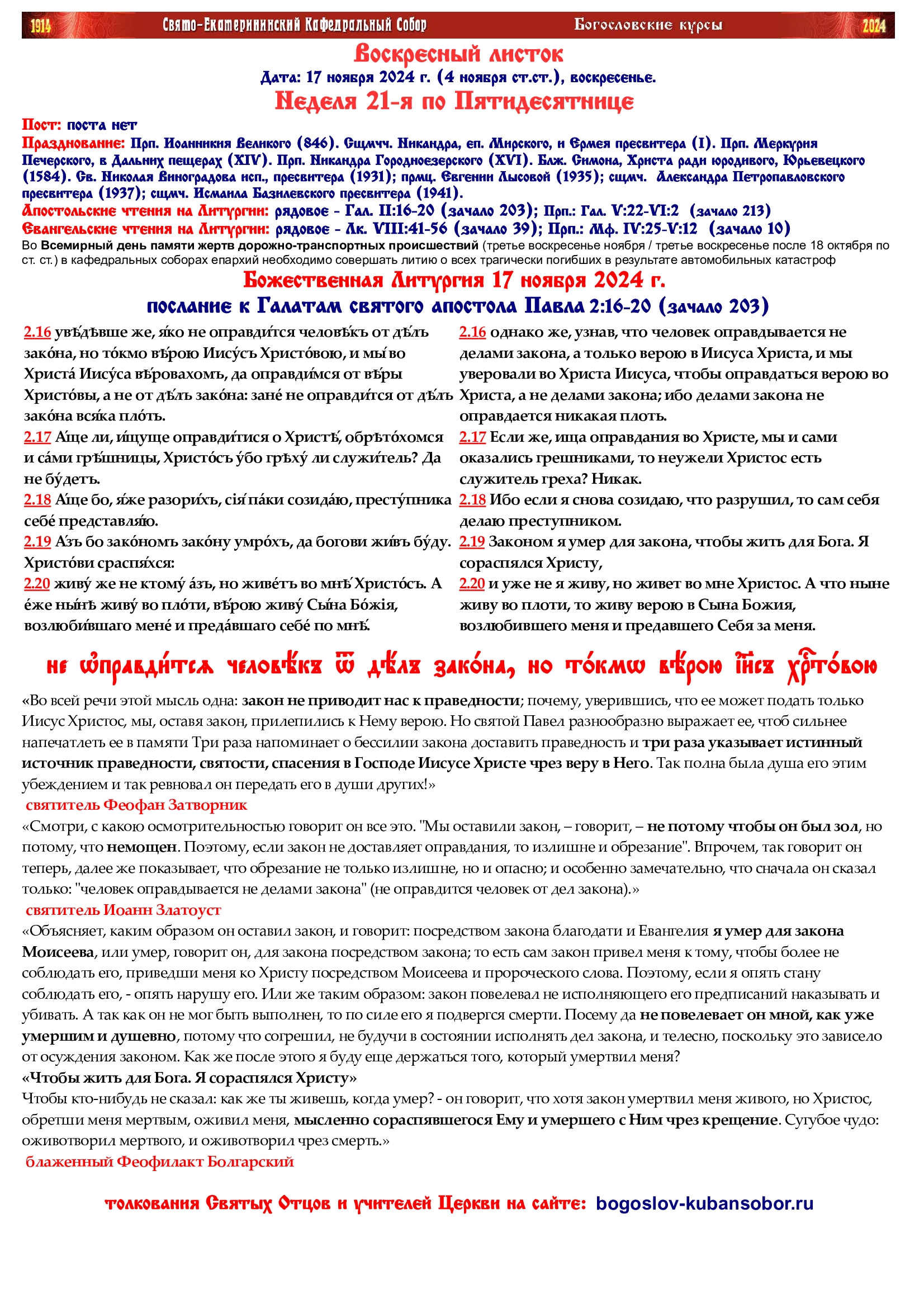 17 ноября 2024 года. Неделя 21-я по Пятидесятнице
