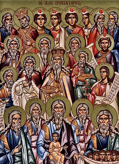 К праотцам относятся также праведные Иоаким и Анна, родители Богородицы, и праведный Иосиф, обручник Богородицы. Эти ближайшие родственники Христа по плоти, а также апостол Иаков Праведный и царь Давид.
