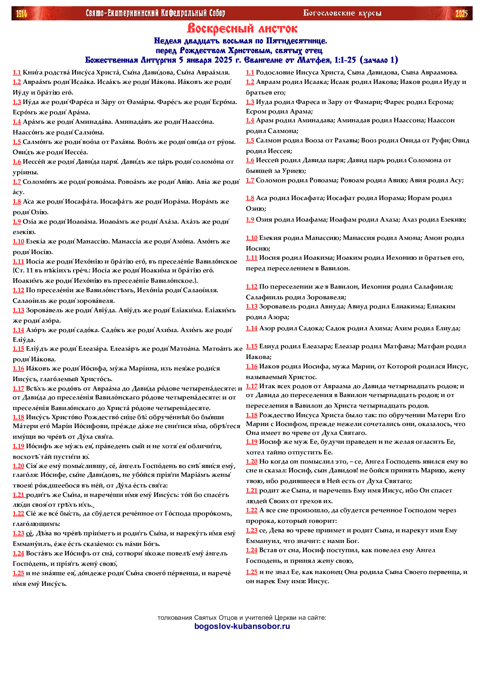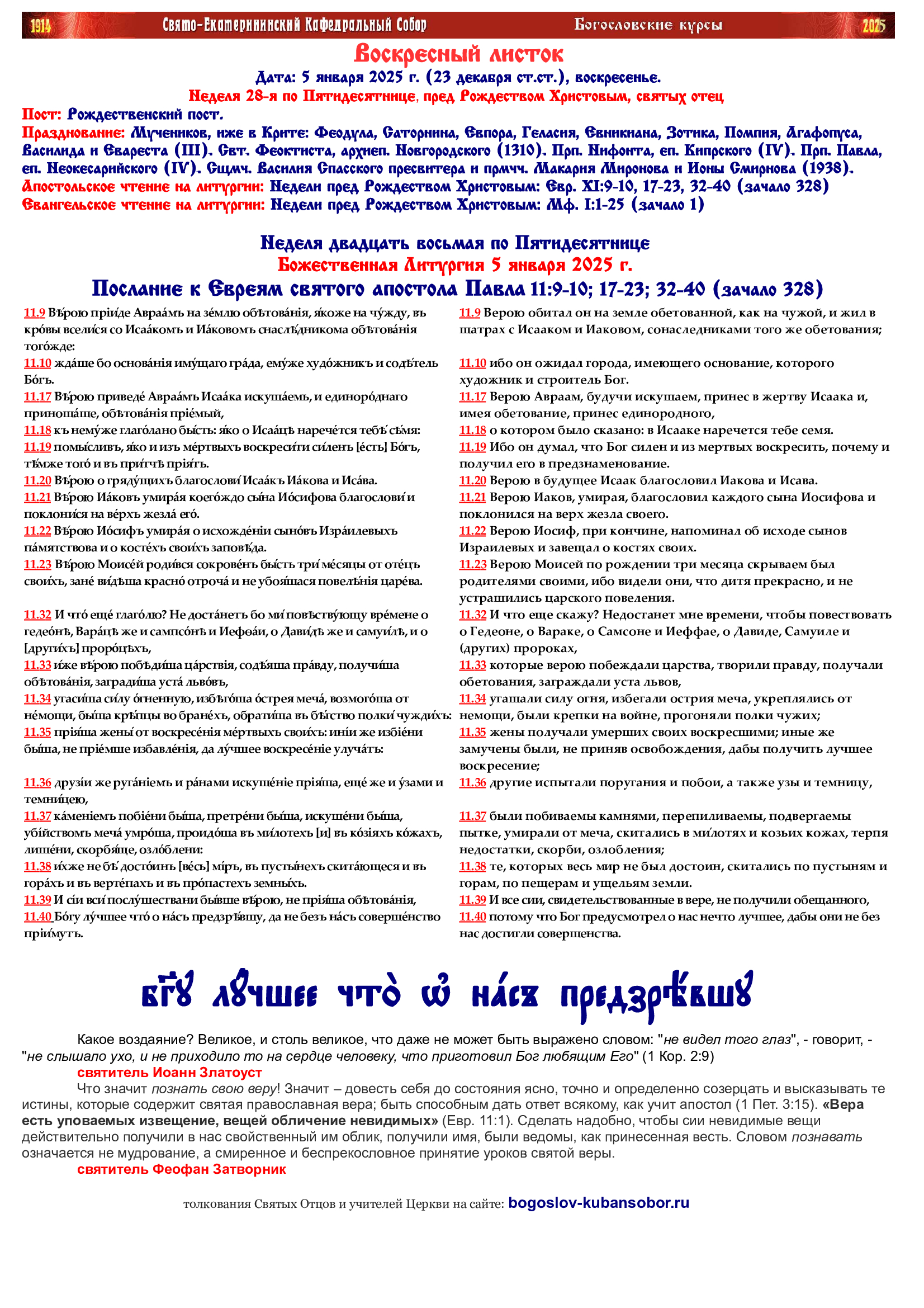 5 января 2025 года. Неделя 28-я по Пятидесятнице