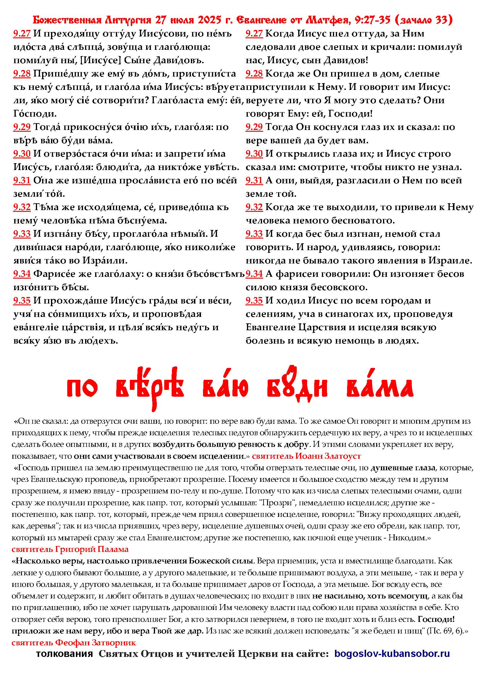 Зачало 33. Евангелие от святого апостола Матфея (9:27–35)