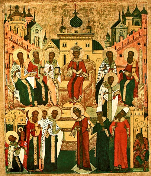 Однако, как мы отметили, молитва Христова относится не только к апостолам – хотя к ним в первую очередь – но и ко всем, кто уверовал и уверует в Господа по слову их. Эта молитва относилась, таким образом, и к святым отцам Первого Вселенского Собора, память коих мы сегодня совершаем. "Соблюди их", – молился Господь Отцу Своему. И Отец соблюл их от заблуждения арианства и Духом Святым вдохновил, просветил и укрепил – и они веру Православную защитили и утвердили.