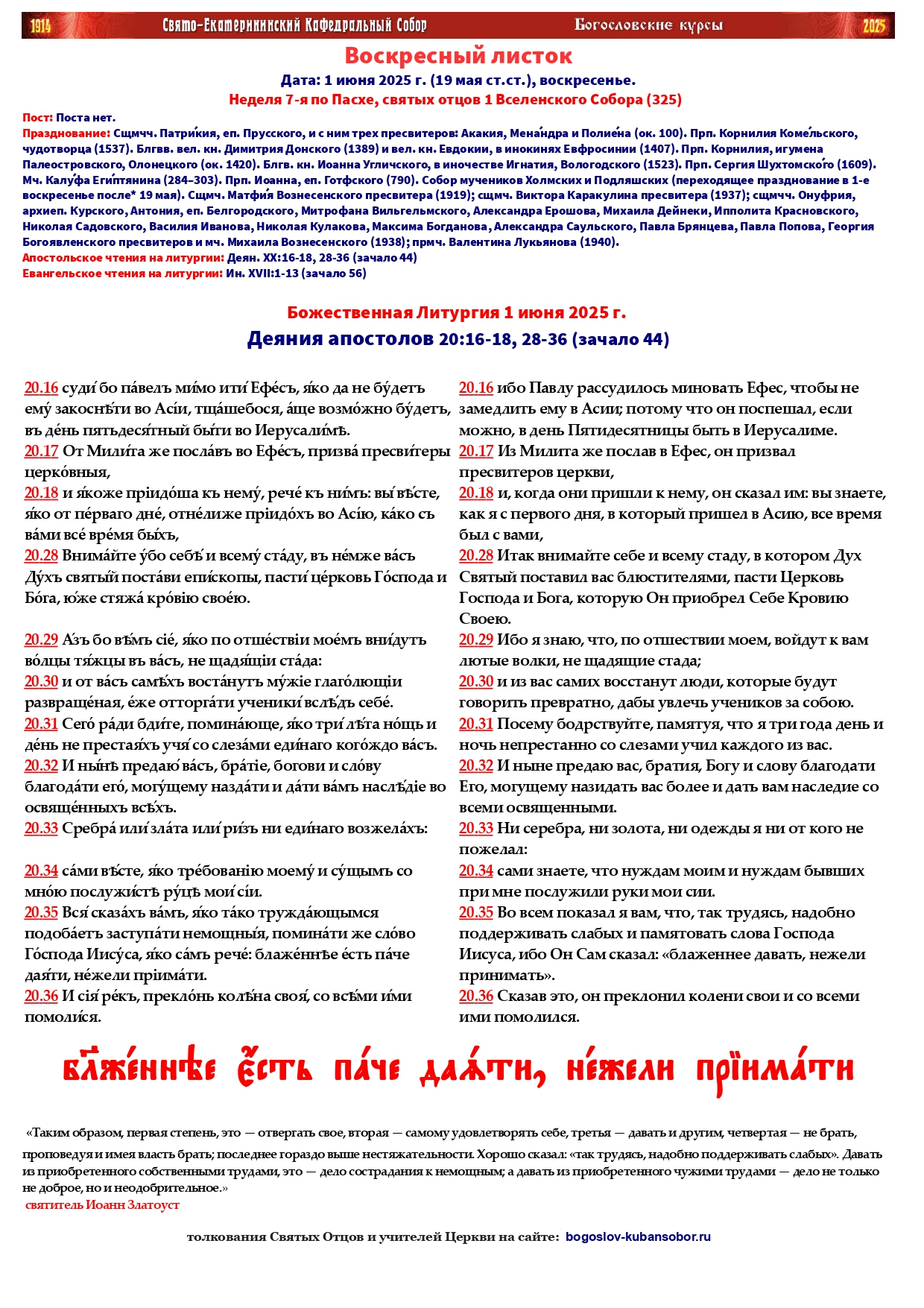 Советуем Вам распечатать "Воскресный листок", предварительно ознакомиться с ним и взять его с собой на службу.