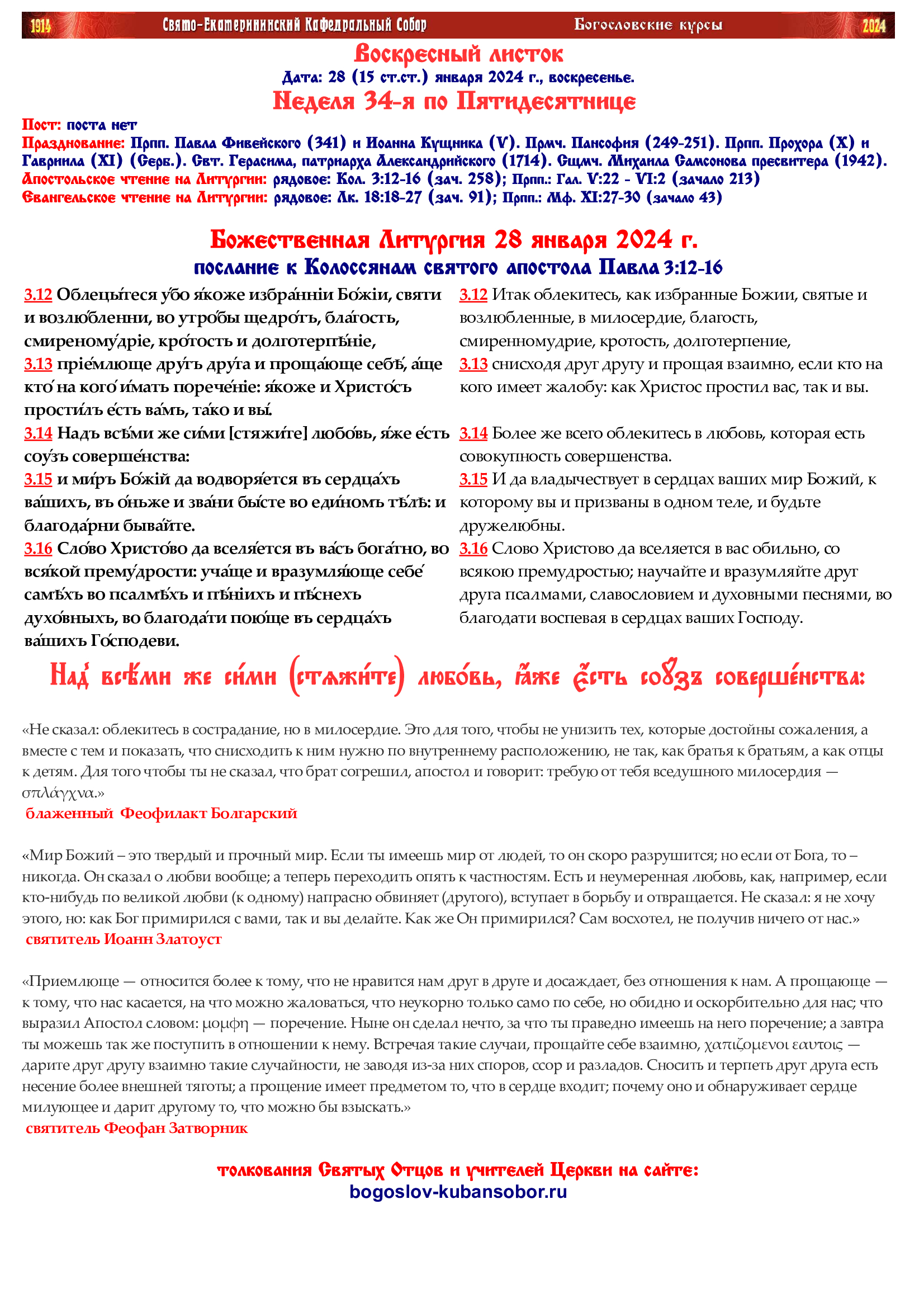 28 января 2024 года. Неделя 34-я по Пятидесятнице