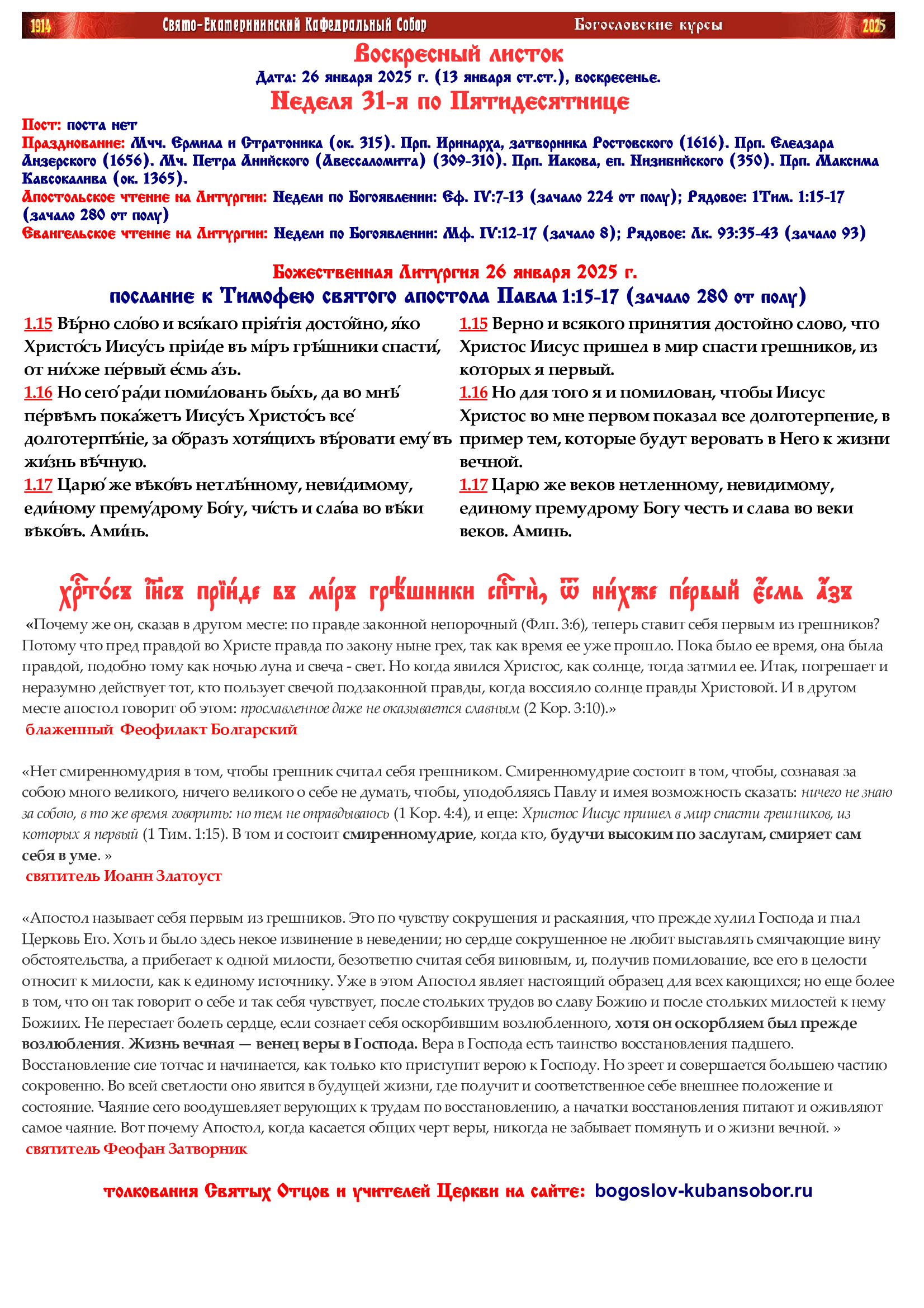 26 января 2025 года. Неделя 31-я по Пятидесятнице