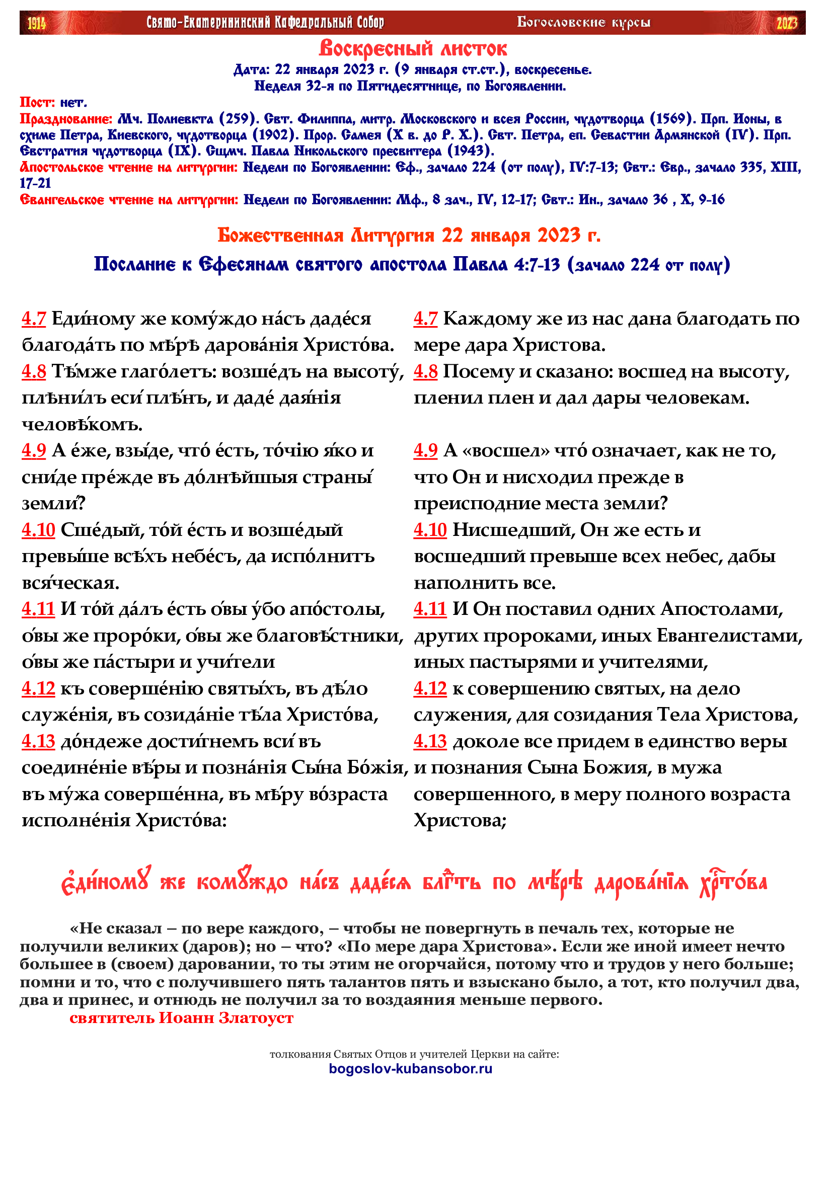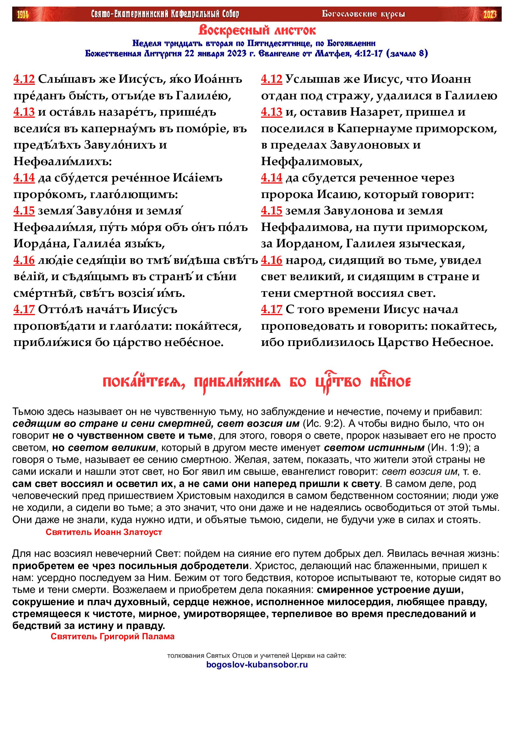 22 января 2023 года. Неделя 32-я по Пятидесятнице