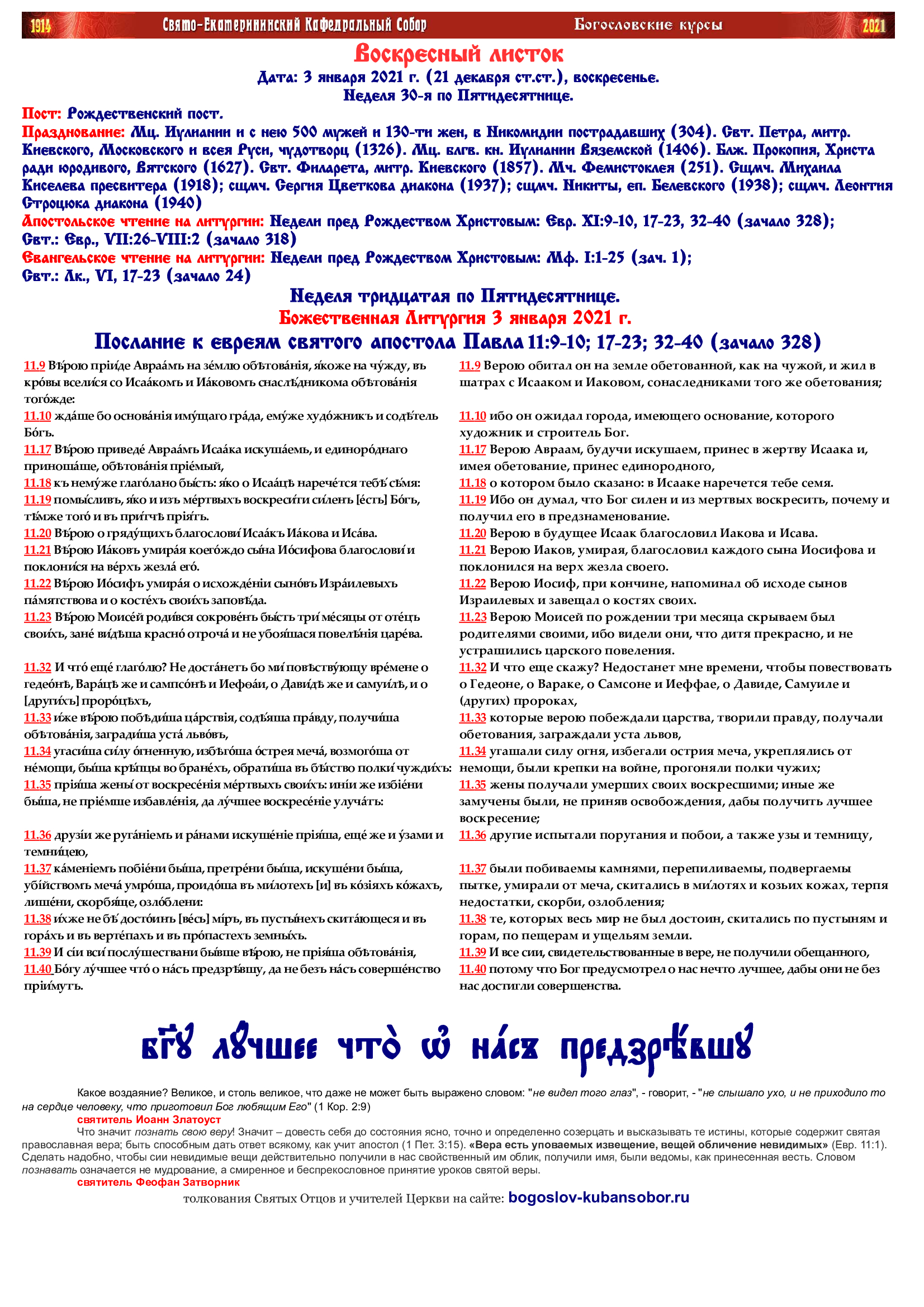 3 января 2021 года. Неделя 30-я по Пятидесятнице
