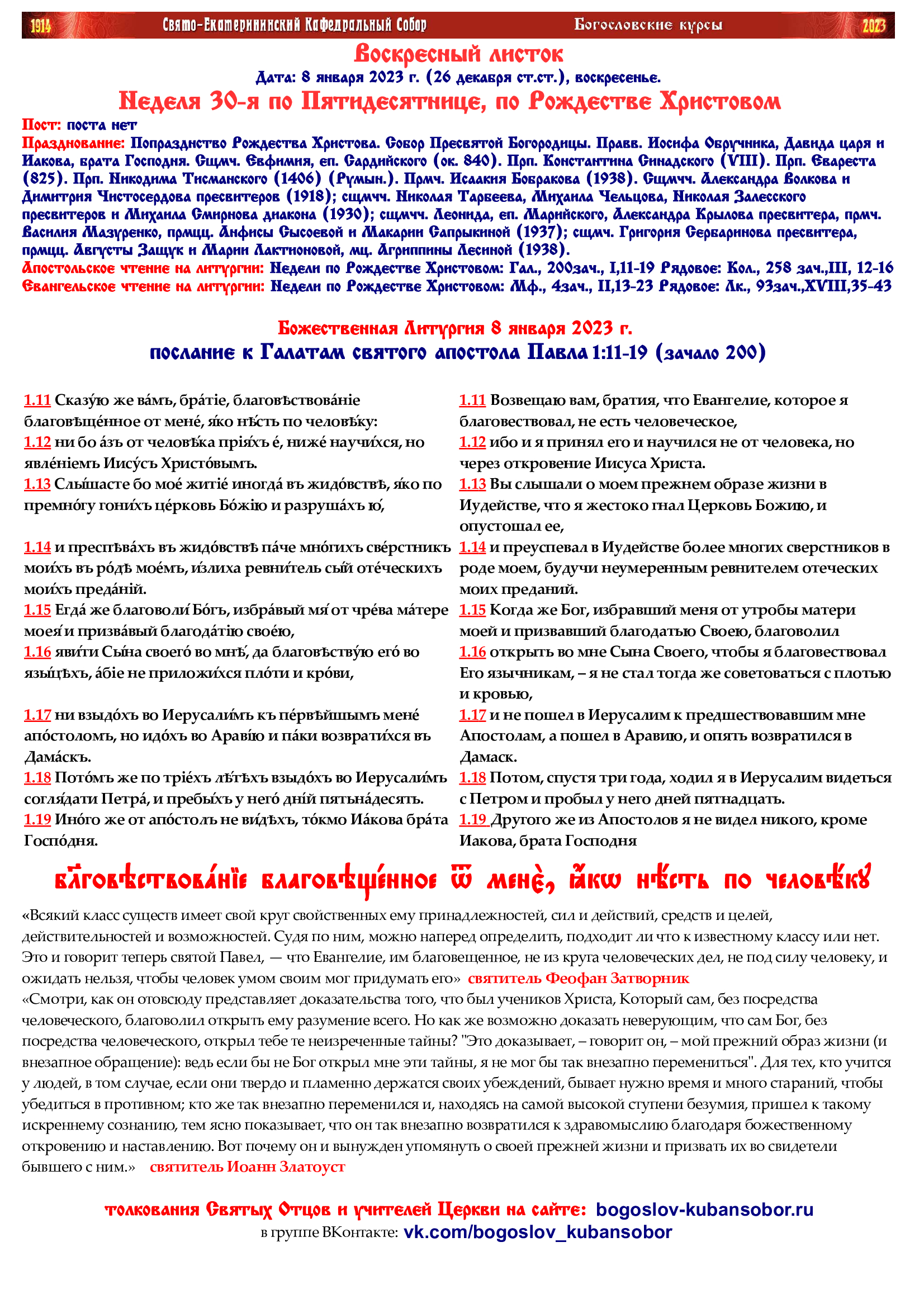 8 января 2023 года. Неделя 30-я по Пятидесятнице