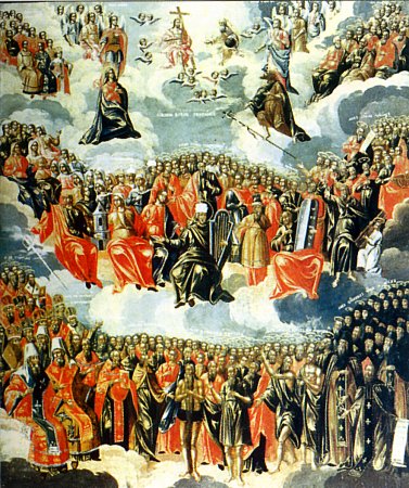 Господь употребляет число сто, выражающее полноту всех чисел, дабы обозначить сим всю полноту даров, которые примут верные. Не сотни, но сотни тысяч мужей и жен оставили все – и получили все. Таковым и посвящена сегодняшняя Неделя – Неделя Всех святых. Некоторые святые имеют в году свои особые дни празднования. Но это лишь самые известные. Кроме них, однако, есть еще огромное количество угодников Божиих, кои остались сокровенными для человеческих очей, но Живому и Всеведущему Богу не менее известны. Они составляют победившую, или торжествующую Церковь Христову и находятся в самой тесной связи с нами, составляющими на земле Церковь воинствующую, сражающуюся. Чрез них светит Господь, как солнце чрез звезды, ибо они суть «члены тела Его, от плоти Его и от костей Его» (Еф. 5:30). Они живы, сильны и близки к Богу. Но точно так же они близки и к нам. Непрестанно взирают они на жизнь Церкви Божией на земле; недреманно следят за нами от рождения нашего до смерти; слышат наши молитвы, знают наши скорби, помогают нам своею силой и своими молитвами, которые, подобно дыму фимиама, возносятся чрез высокие горы ангельские ко престолу Божию. Сие суть великие мученики и мученицы за Христа, святители и богоносные отцы, пастыри и учители Церкви, благочестивые цари и царицы, защитившие Церковь Божию от гонителей, исповедники и пустынники, постники и отшельники, воины и юродивые – словом, все те, для кого любовь Христова затмила всякую иную любовь на земле и кто ради имени Христова оставил все и претерпел все до конца, чем и сам спасся, и других спас. Они и сегодня помогают нам спастись; ибо нет в них ни себялюбия, ни зависти: для них радость, чтобы как можно больше мужей и жен спаслись и вошли в ту же славу, что и они. Все они верою побеждали. Все они угашали силу огня, которая в виде страстей попаляет слабые существа человеческие. Многие из них испытали поругания и побои, а также узы и темницу, были побиваемы камнями. Многие из них, которых весь мир не был достоин, скитались, терпя недостатки, скорби, озлобления, по пустыням и горам, по пещерам и ущельям земли. Но жизнь сия есть практический экзамен, а награды даются в мире ином. Они сдали этот экзамен блестяще и ныне помогают и нам, чтобы и мы не посрамились, но сдали его, да уподобимся им во Царствии Божием. Воистину дивен и чуден Бог во святых Своих!