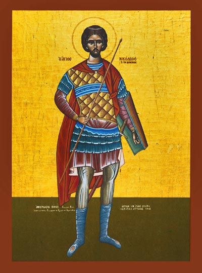 в РПЦ святой именуется: преподобный Николай монахНекоторые полагают, что сей великий святой был по происхождению славянином. В правление царя Никифора Николай служил воеводой, командуя той частью армии, которая отправилась на войну с болгарами. По пути [на поле битвы] Николай переночевал в некой корчме, где подвергся немалому искушению и видел странный сон. Этот сон полностью сбылся на войне, когда в 811 году греки потерпели страшное поражение от болгар. Николай спасся [от гибели] — и в благодарность Промыслу Божию оставил военную службу и принял монашество. Долго подвизаясь, взошел он на такую ступень совершенства, что стал великим Божиим угодником и прозорливцем. Мирно упокоился в IX столетии и переселился в блаженное Царство Владыки Христа.