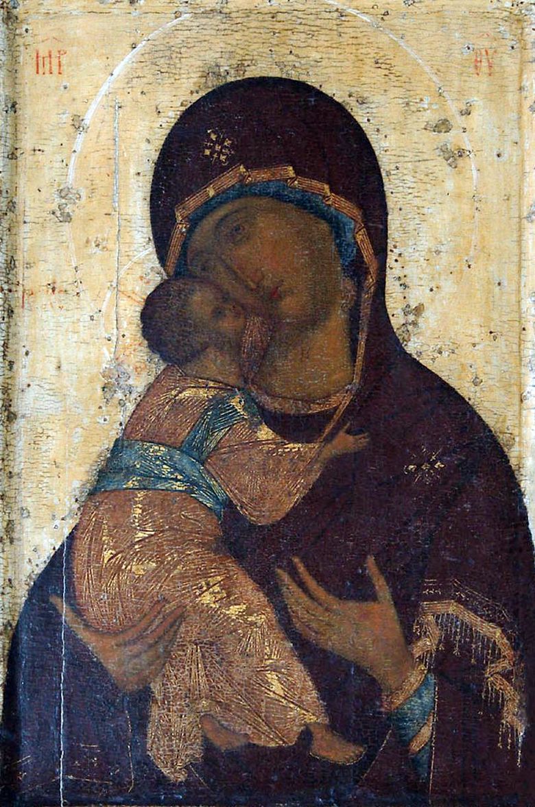 Владимирская икона Божией Матери из Успенского собора Владимира; иконописец: прп. Андрей Рублев (?); между 1395 и 1406 гг.; место хранения: ГВСМЗ
