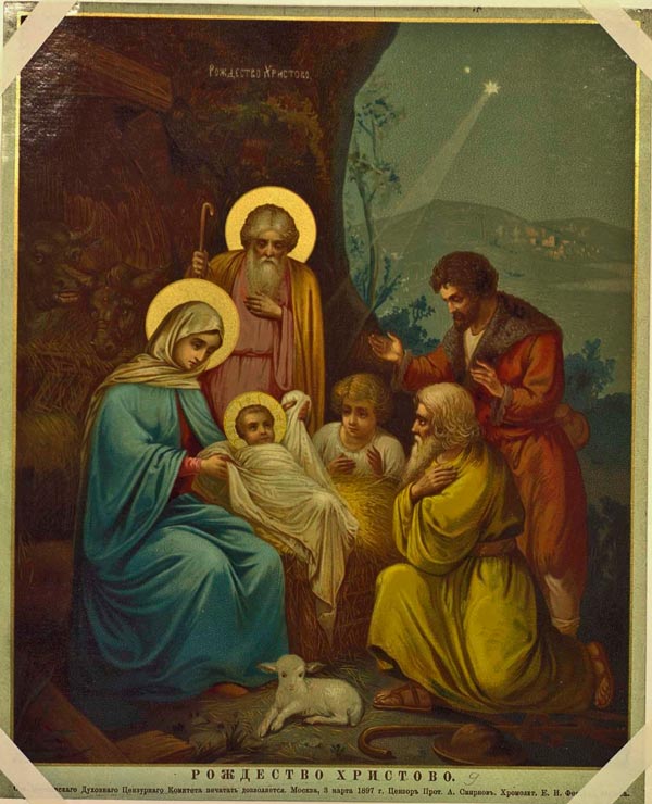 [в это время] вышло повеление от кесаря Августа сделать перепись всего народа в Римской империи. Согласно этому указу, каждый обязан был идти в свой город и там пройти перепись. Посему праведный Иосиф пришел с Пресвятой Девой в Вифлеем, город Давида, потому что оба они происходили из царского, Давидова колена. Но так как в том маленьком городке скопилось множество народа, чтобы быть вписанными в регистры, Иосиф и Мария не смогли найти ночлега ни в одном доме, из-за чего укрылись в вертепе, то есть в пещере, куда пастухи загоняли своих овец.