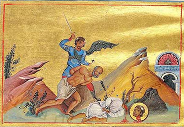 "Се, Дева во чреве приимет и родит Сына... - смутился, взял нож, чтобы выскоблить Слово Дева и, заменив перевести на греческий язык таким образом. Однако в эту минуту явился Симеону Ангел Божий и удержал его руку, объяснив ему, что это пророчество истинно и записано точно. А в том, что оно истинно и точно, добавил ему Божий вестник, удостоверится и он сам лично, ибо, по воле Божией, не умрет, пока не увидит Мессию, рожденного от Девы. Праведный Симеон обрадовался такому голосу с неба, оставил пророчество неизменным и