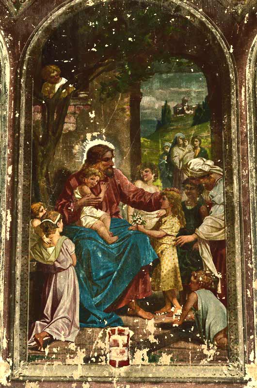 фреска "Христос благословляет детей"; храм во имя равноапостольных царей Константина и Елены; село Нагорное, Ряжский район, Рязанская область