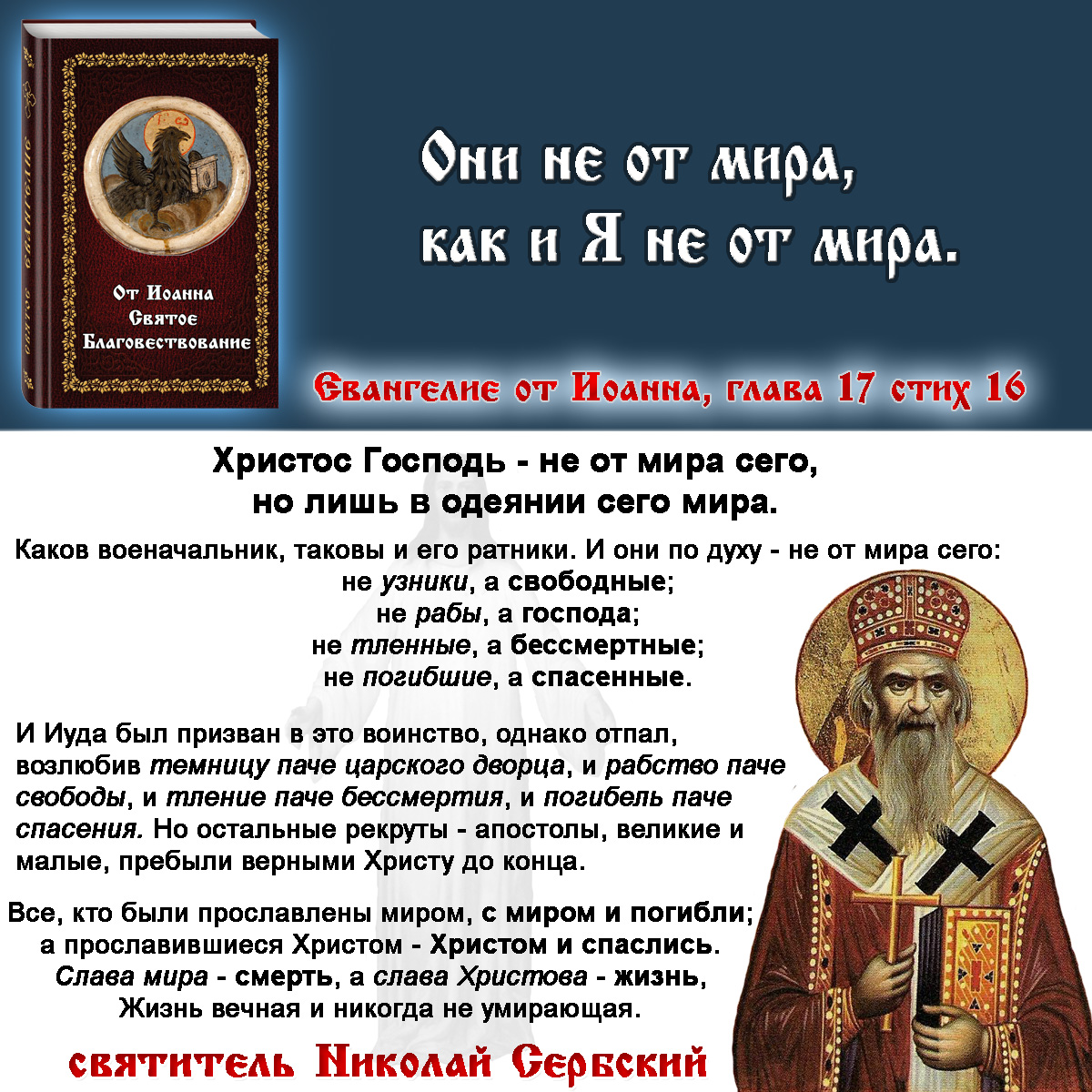 "Они не от мира, как и Я не от мира."