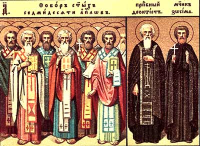 Помимо 12-ти великих Апостолов, Господь избрал еще и 70 других, малых, Апостолов и послал их на проповедь Евангелия по два пред лицем Своим во всякий город и место, куда Сам хотел идти, и сказал им: