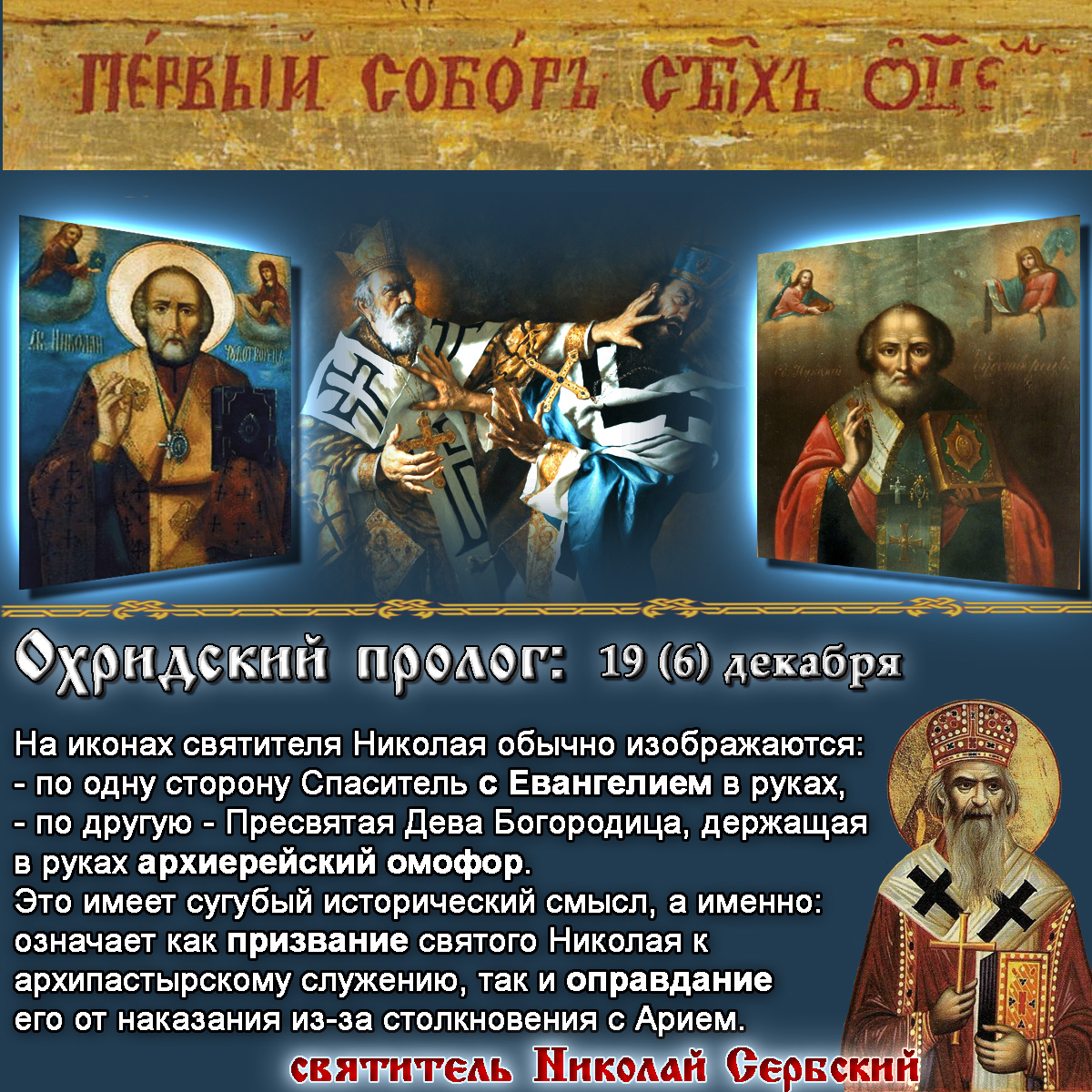 Немедленно после этого он - досточудным Промыслом Божиим - был избран архиепископом ликийского города Миры. Милостивый, мудрый, бесстрашный, святитель Николай явился подлинным добрым пастырем своего стада. Во время гонения на христиан, воздвигнутого Диоклетианом и Максимианом, он был брошен в темницу, но и там поучал людей закону Божию. Присутствовал на Первом Вселенском Соборе в Никее, где, движимый пламенной ревностью по истине, нанес удар рукой еретику Арию. За такой поступок он был удален с Собора и отстранен от архиерейского служения, пока нескольким первым архипастырям на Соборе не явились Сам Господь Иисус Христос и Пресвятая Богородица и не выказали Своего благоволения к святому Николаю.