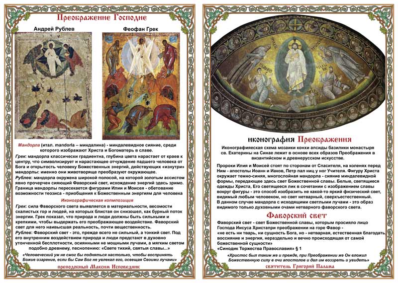 Листовка ко Дню Преображения Господа Бога и Спаса нашего Иисуса Христа
