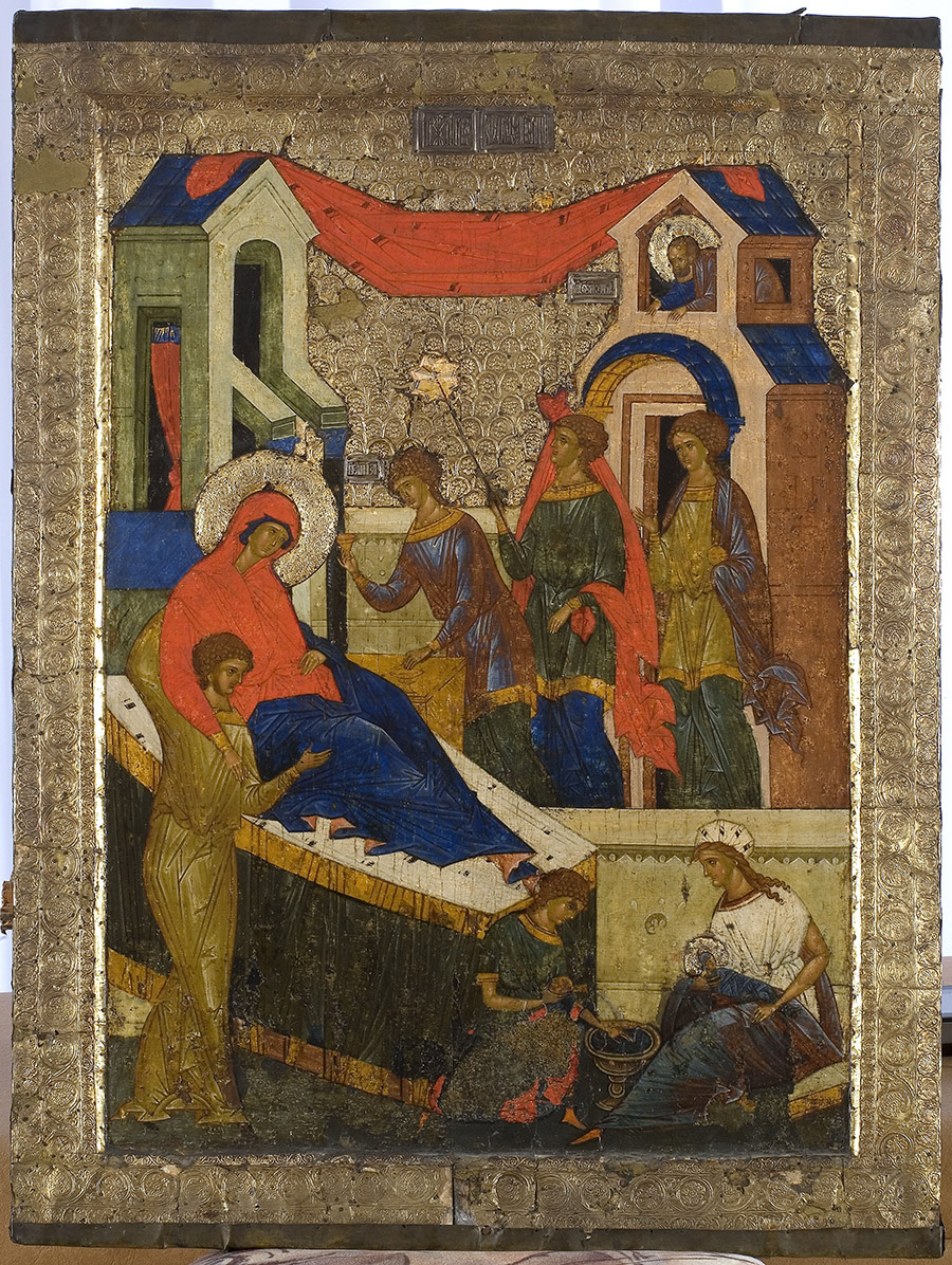 Рождество Богородицы; икона из местного ряда иконостаса Успенского собора Кирилло-Белозерского монастыря; около 1497 г.; место хранения: Кирилло-Белозерский историко-архитектурный и художественный музей-заповедник